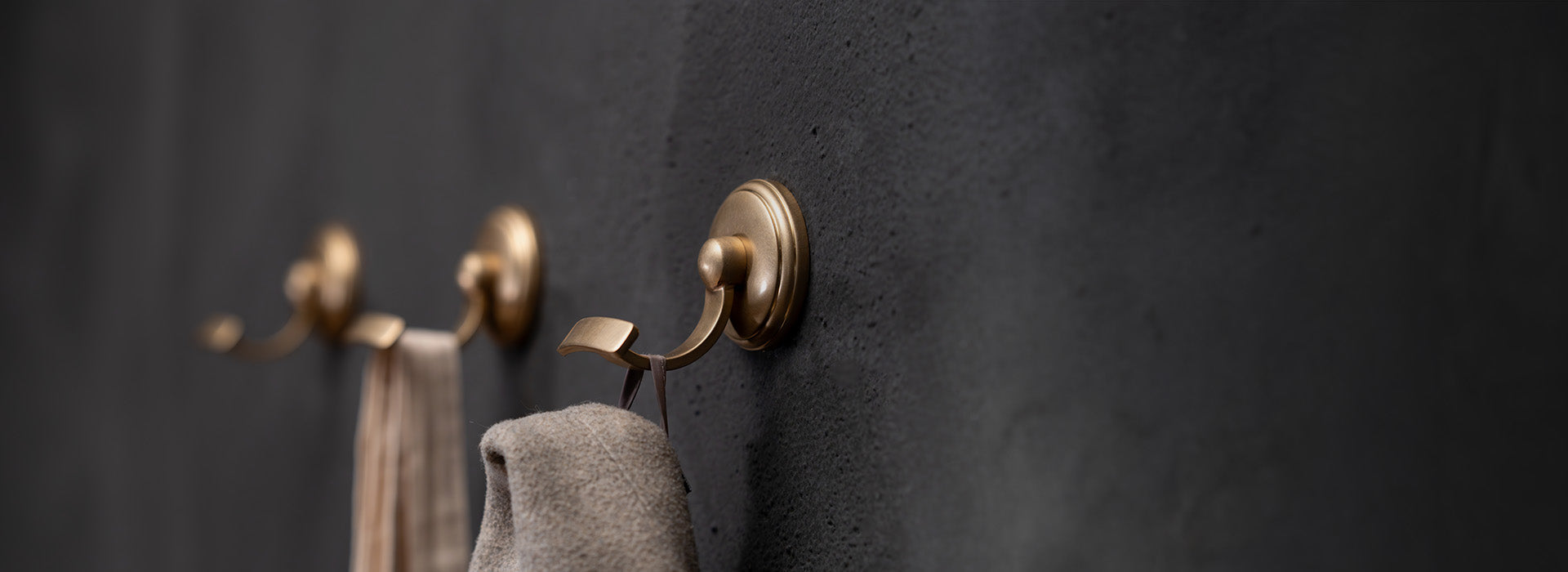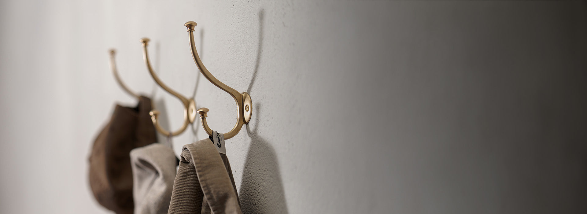 Organiza tus pasillos y cuartos de baño con nuestros percheros de latón sólido. Utilízalos solos o duplícalos para obtener más espacio de almacenamiento. Combínalos con otros artículos de nuestras colecciones.