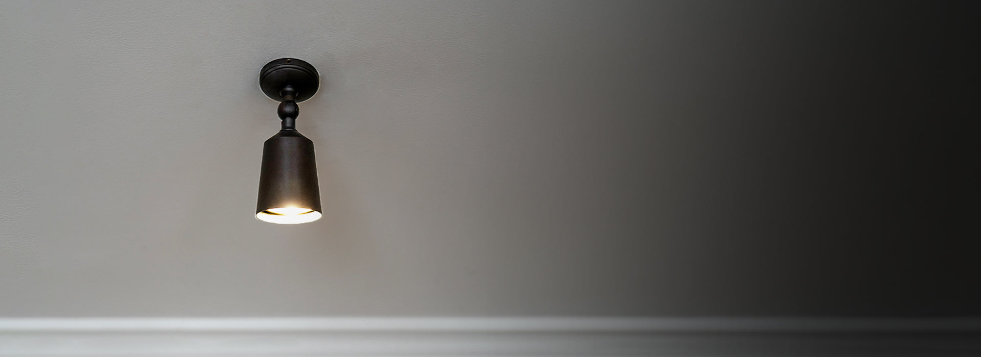 Lámparas de techo hechas de latón macizo en diferentes tamaños y versiones dobles e individuales. El modelo Perryn y nuestros modelos pintables son solo para techos de cartón-yeso. El modelo Baylis es para cualquier tipo de techo.