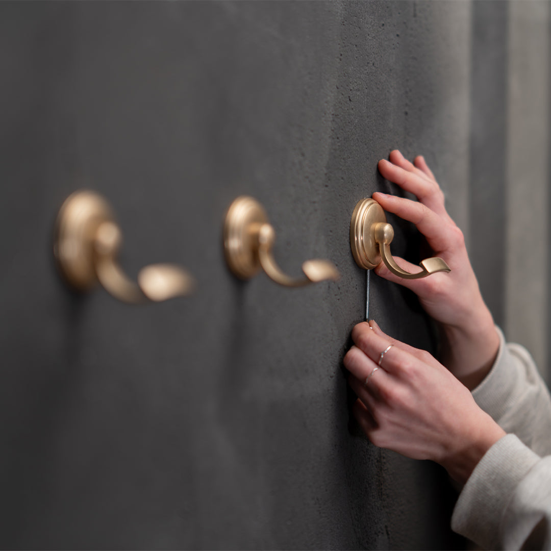 Los ganchos de fijación oculta como los nuestros se instalan en un soporte de pared. Nuestras instrucciones paso a paso te facilitarán la instalación.