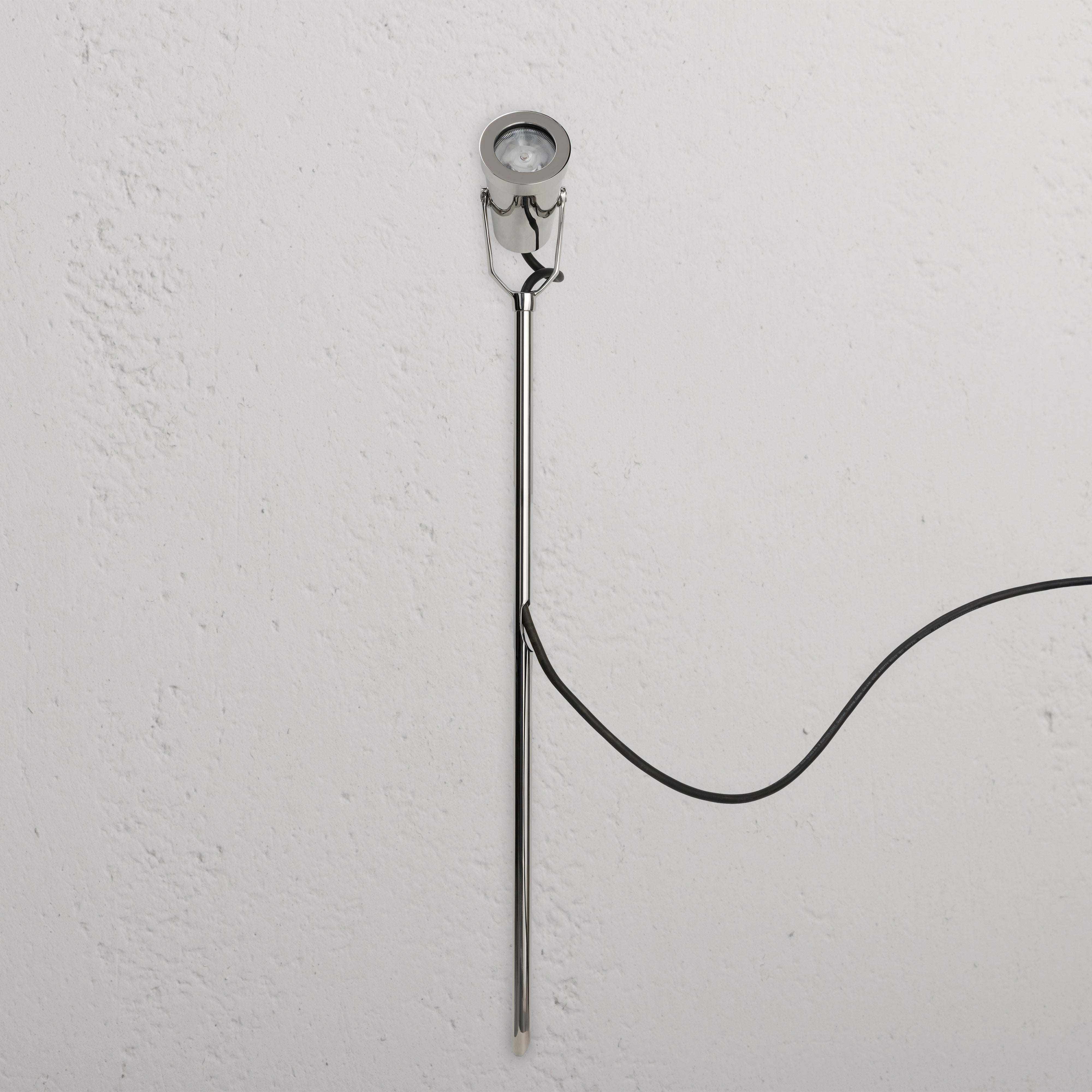 La lámpara para piso se puede orientar hacia arriba o hacia abajo para iluminar diversos elementos del jardín, como caminos, parterres, árboles y paredes exteriores.