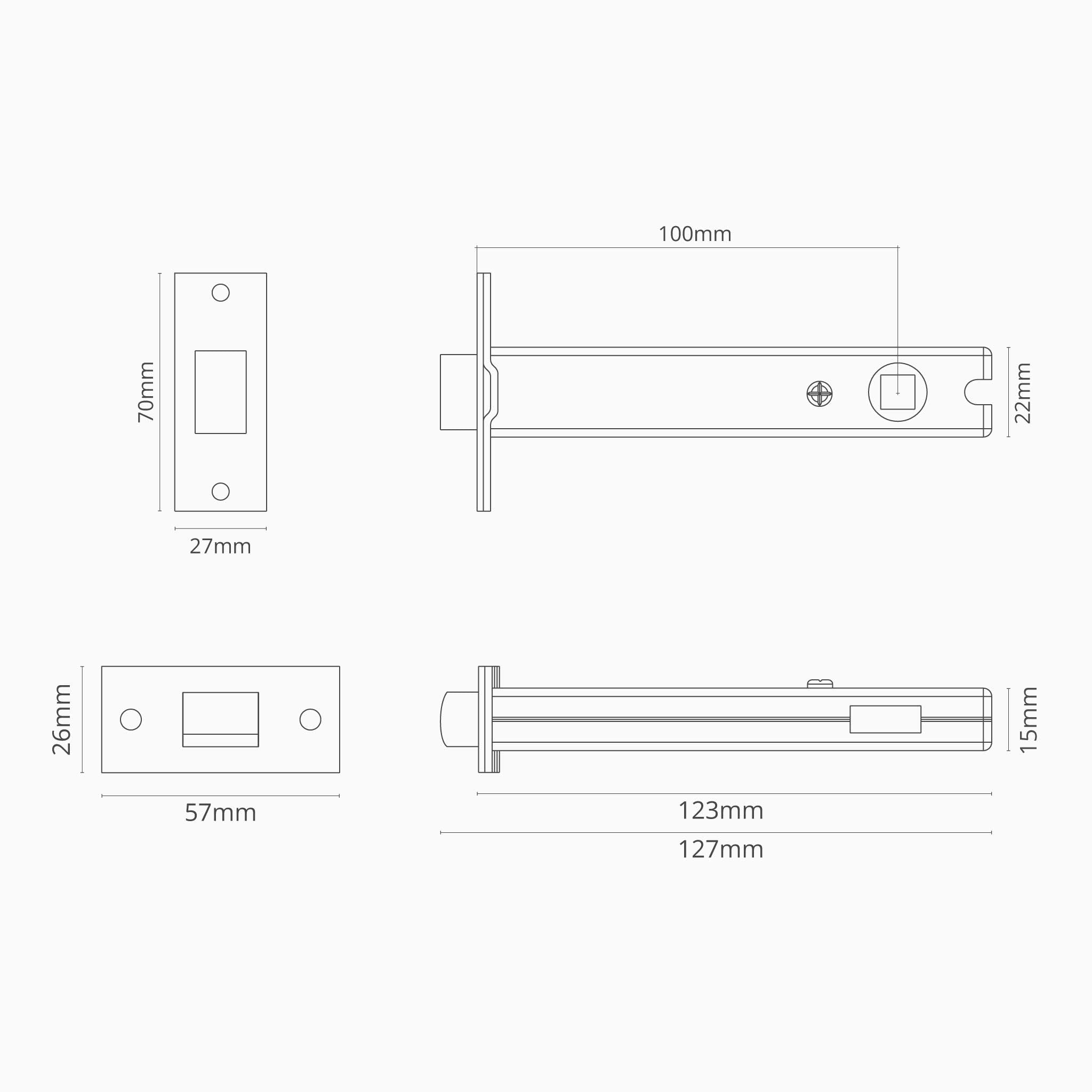 Asegura tus puertas de interior con una cerradura para cuartos de baño. Nuestra opción en 100mm está diseñada para funcionar perfectamente con nuestos pestillos de 100mm.