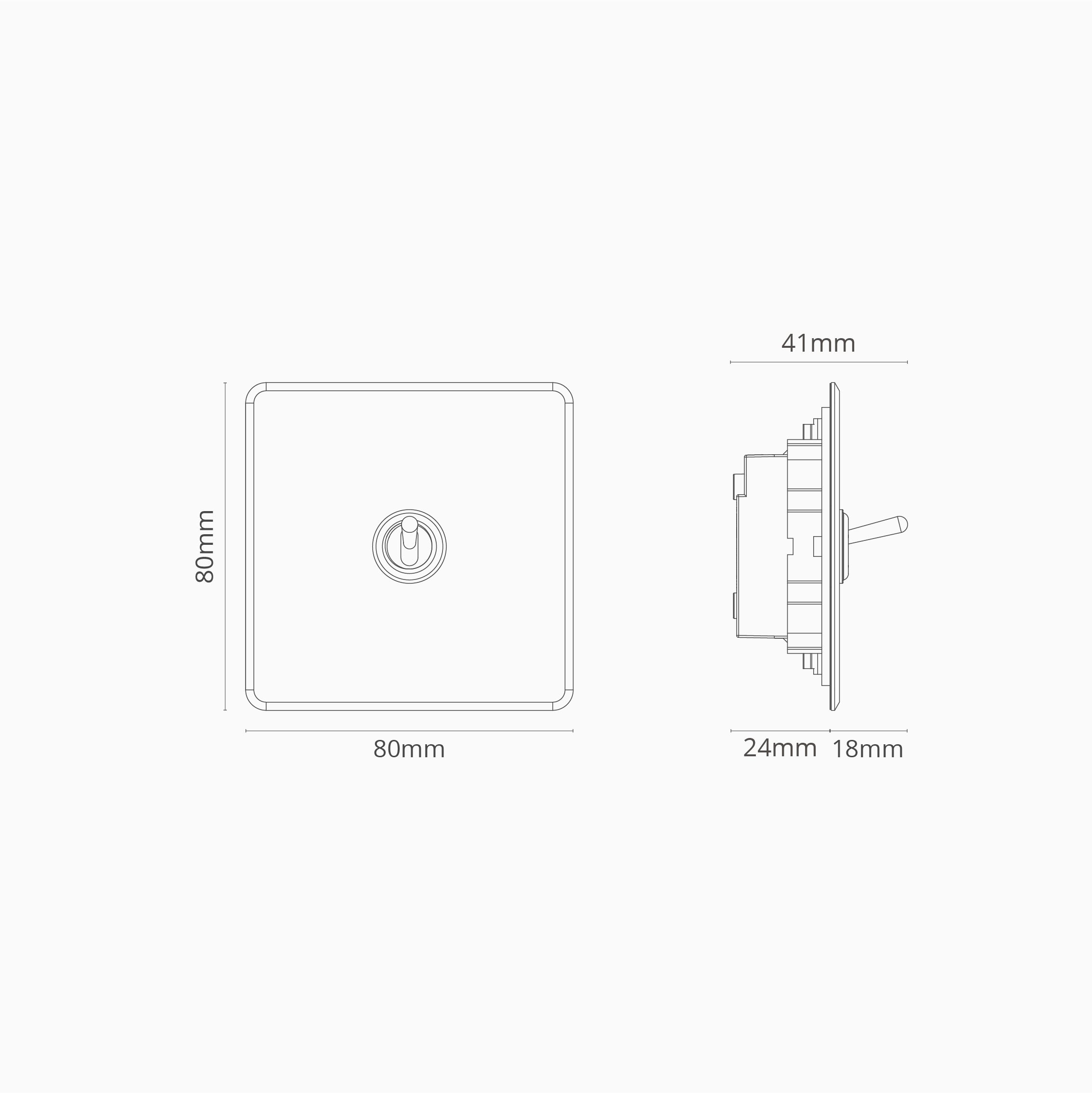 Este pulsador de palanca en marco individual tiene solo 2 mm de espesor y una superficie lisa, sin tornillos. Realmente es casi invisible en la pared.