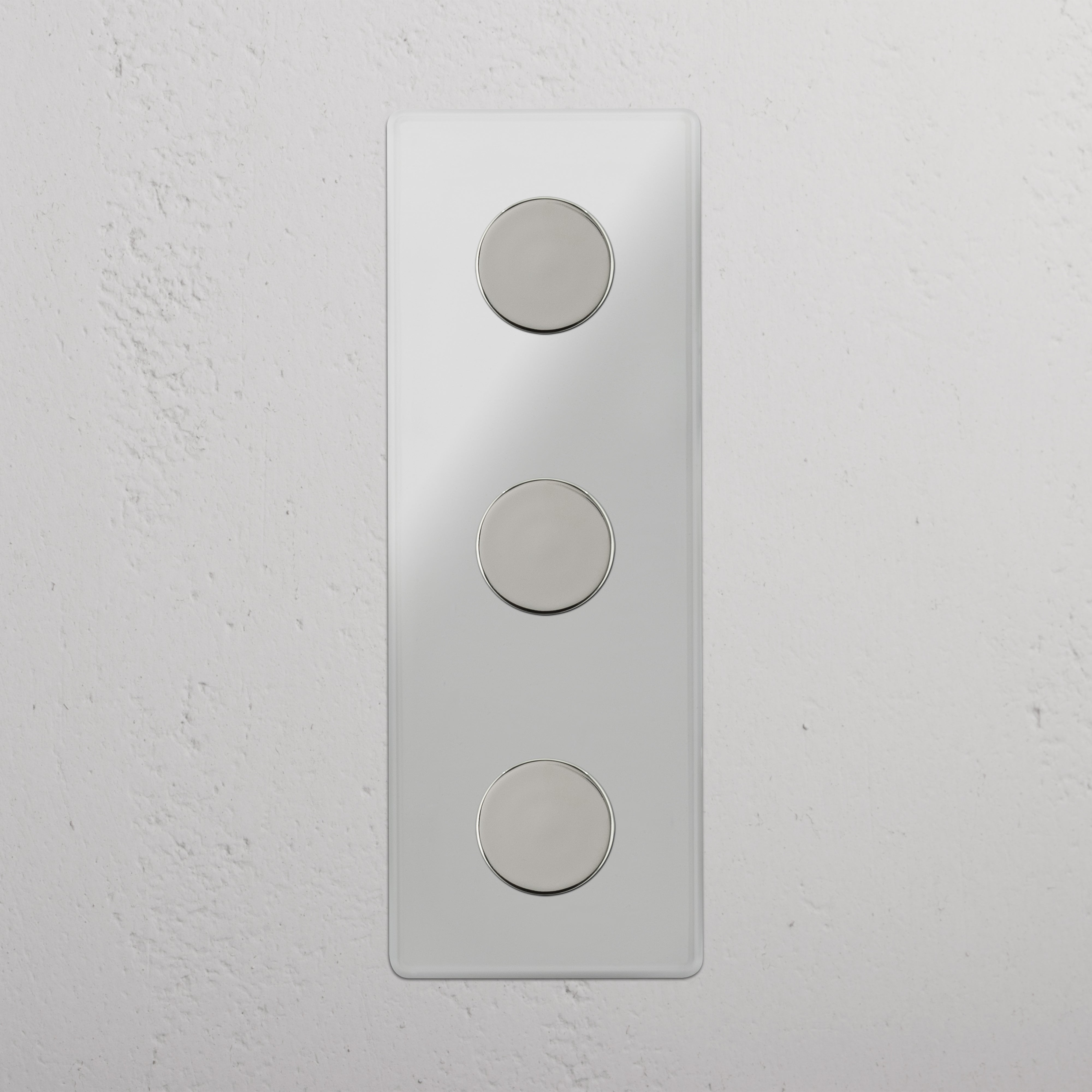 Este regulador de luz x3 vertical en marco triple tiene solo 2 mm de espesor y una superficie lisa, sin tornillos. Realmente es casi invisible en la pared.