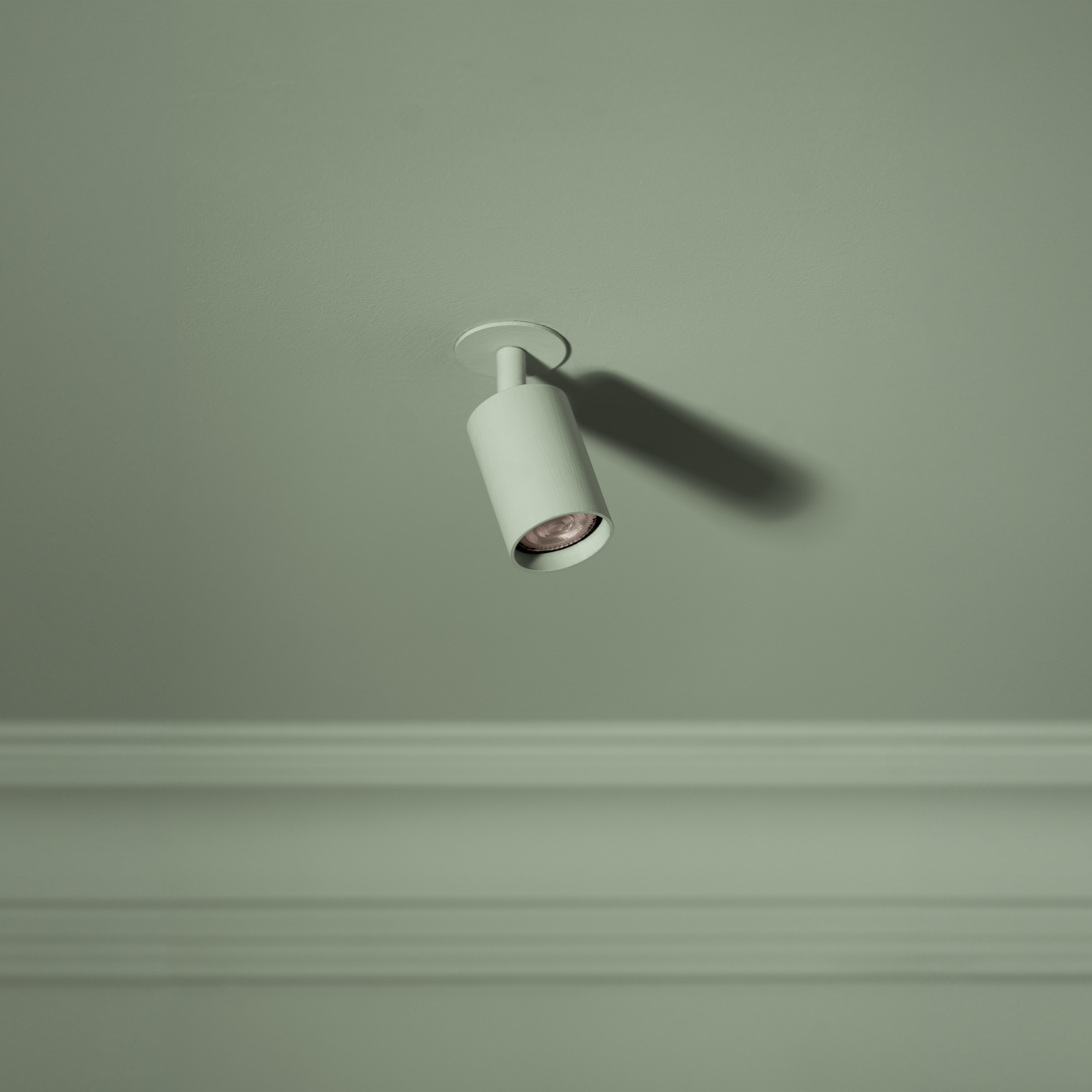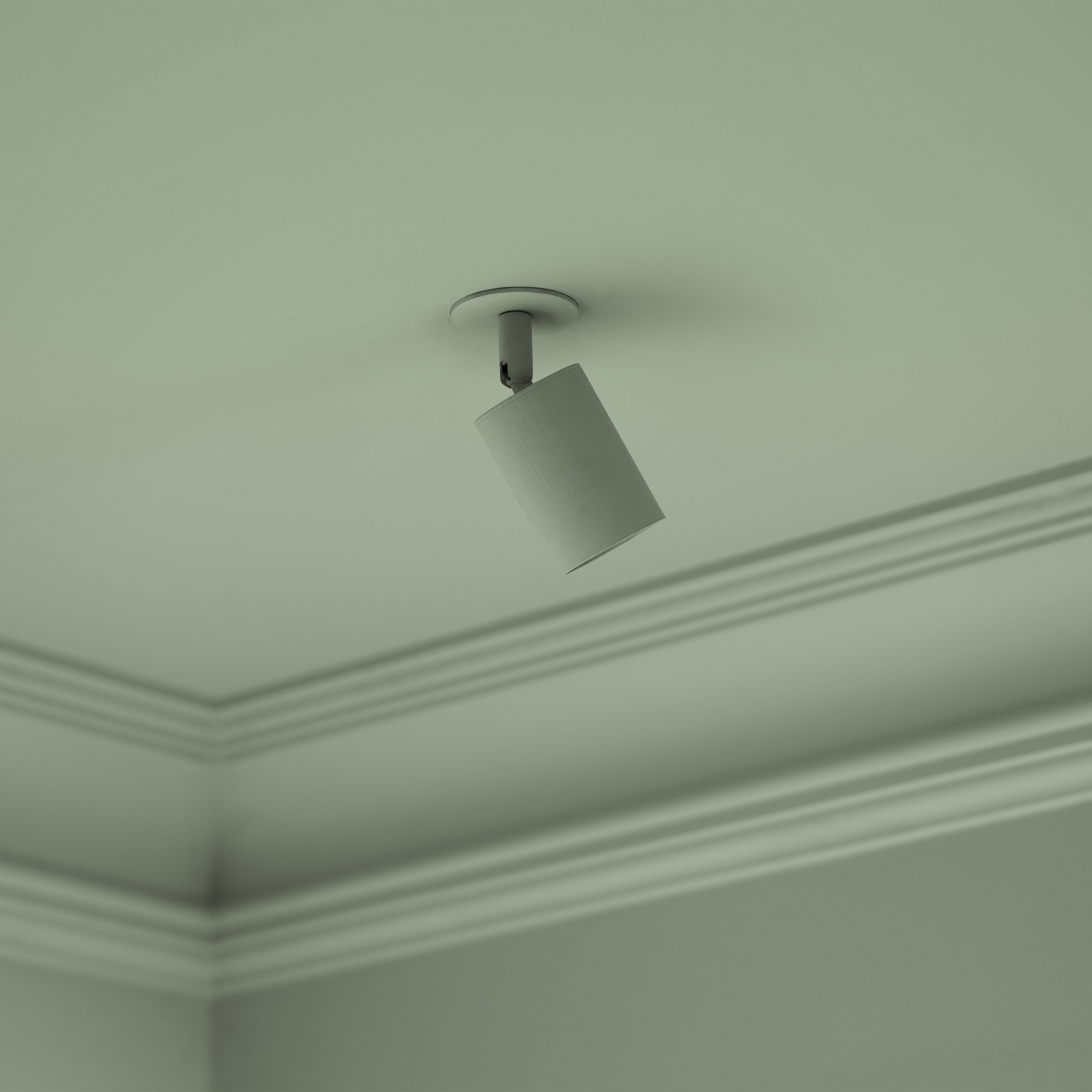 Nuestra lámpara direccional Brompton está diseñada para montarse en superficies y puede inclinarse y rotarse 360 grados.