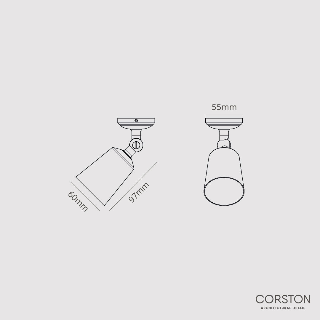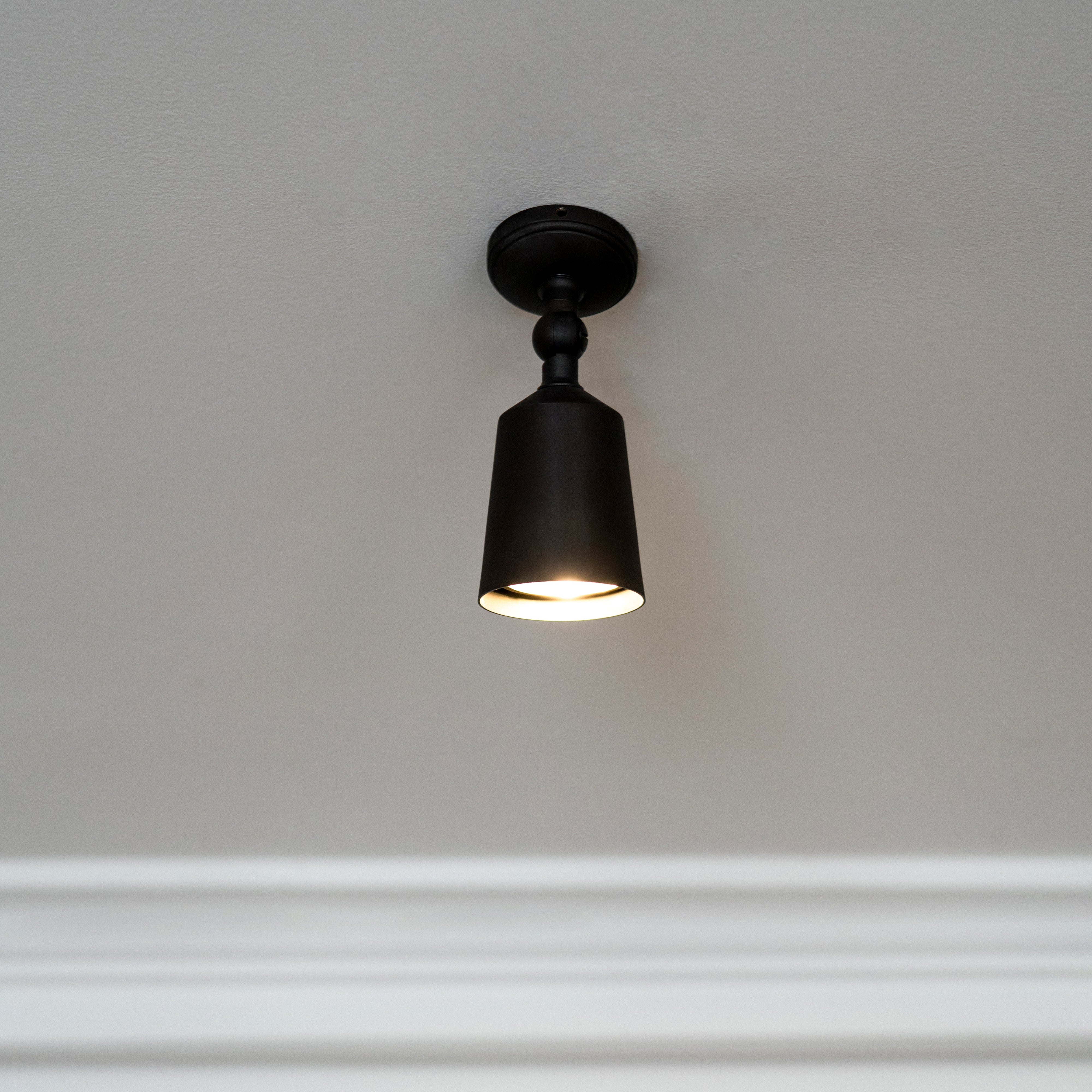La lámpara de techo individual Baylis tiene un aspecto pulido gracias a la placa pequeña y el conjunto de tornillos discretos. La delicada articulación rotatoria gira 320° y se inclina 180° para iluminar áreas específicas de una habitación.