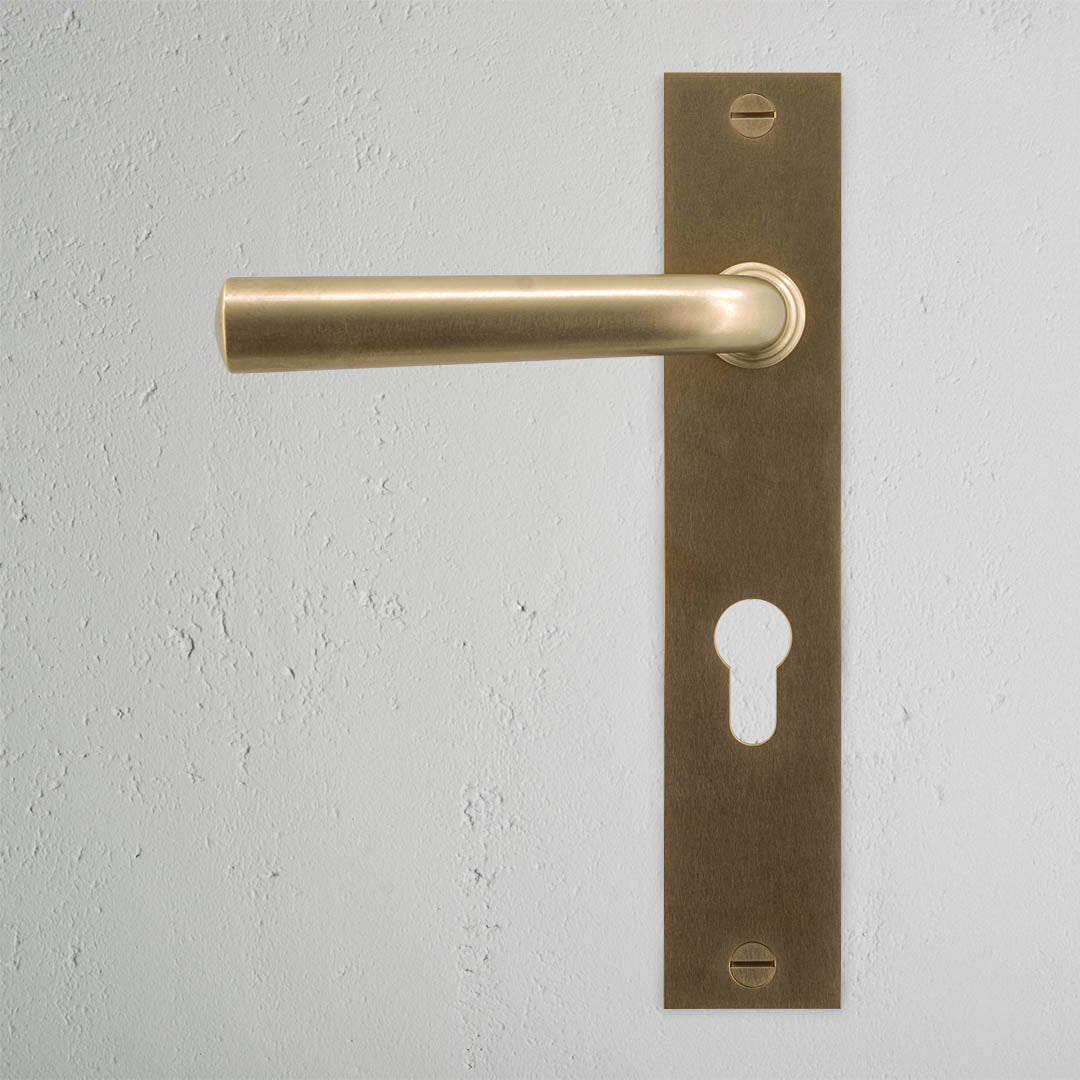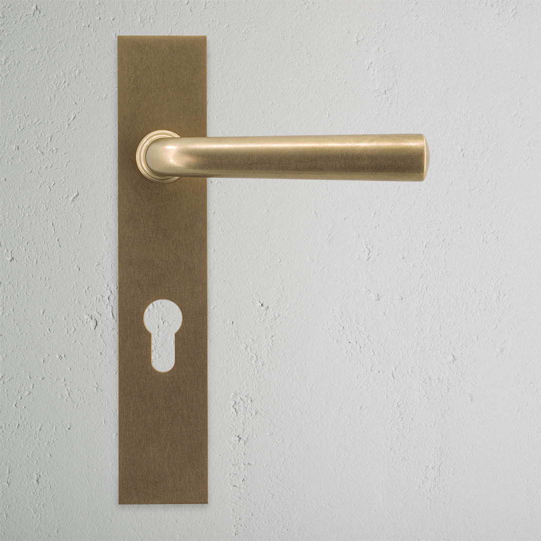 Manilla para puertas Apsley con placa larga (con muelle) y sistema giratorio - Latón antiguo