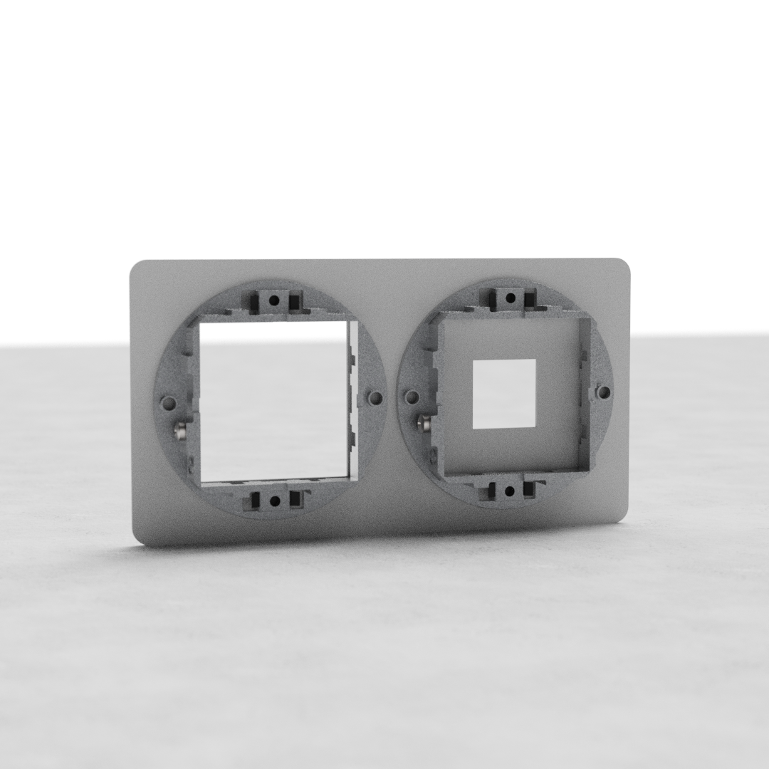 Esta placa doble pintable funciona con uno de nuestros módulos Keystone de 20 mm y un enchufe de 45 mm o módulo de interruptor de balancín.