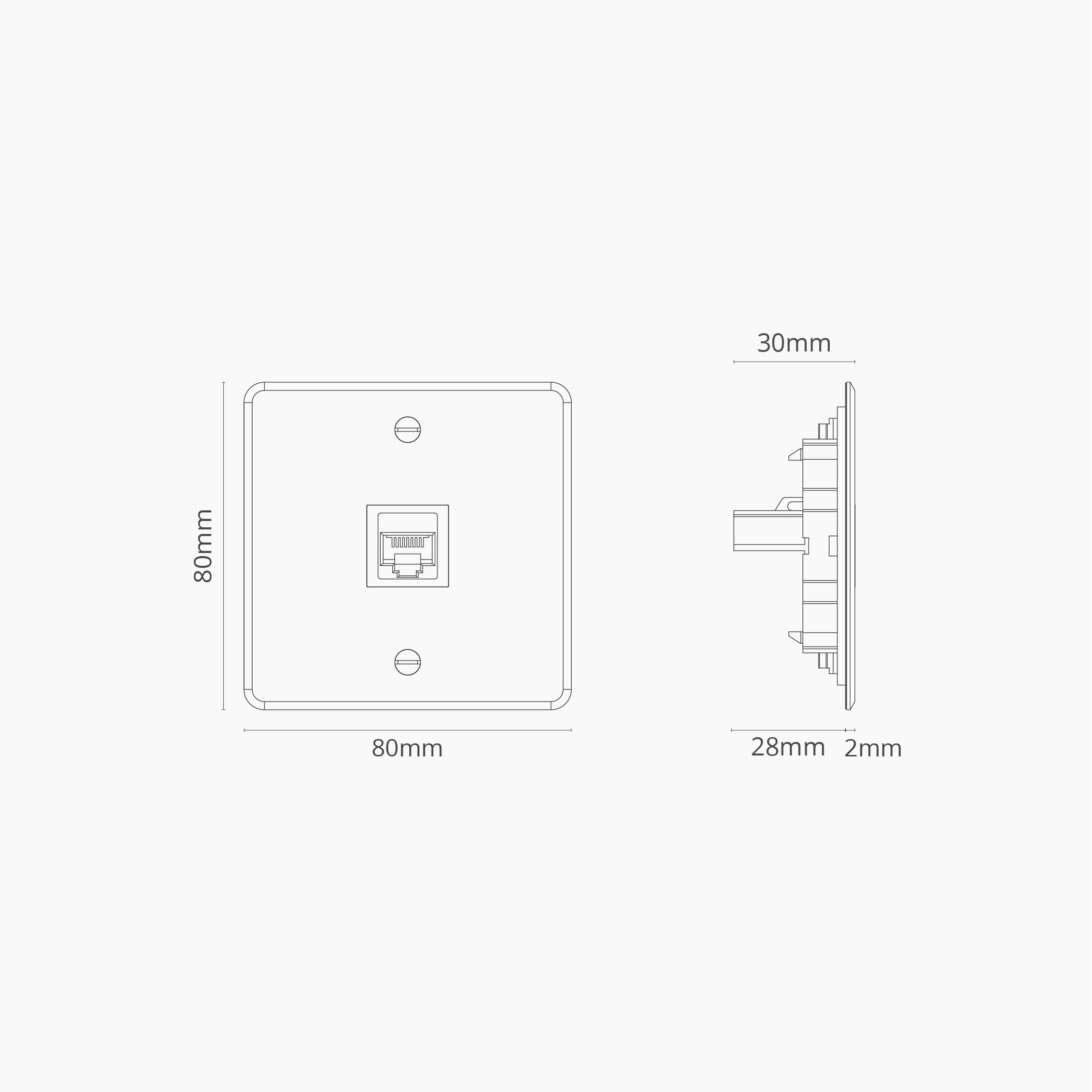 Esta toma RJ45 en marco individual tiene solo 2 mm de espesor y realmente es casi invisible en la pared.