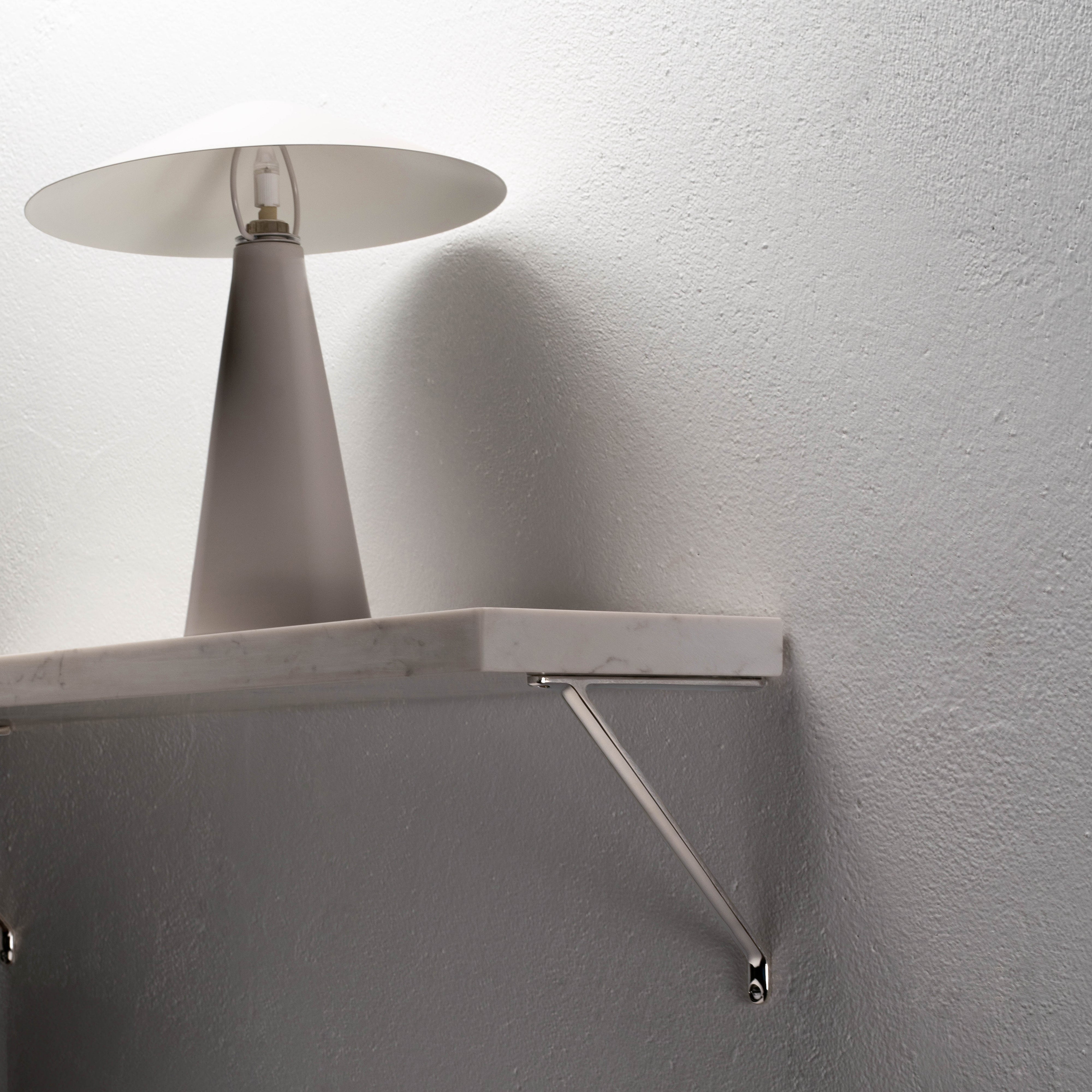 Nuestro soporte de estantería Brixton está fabricado en una sola pieza de latón macizo. Se colocará a ras de la pared y soportará cómodamente 40kg.