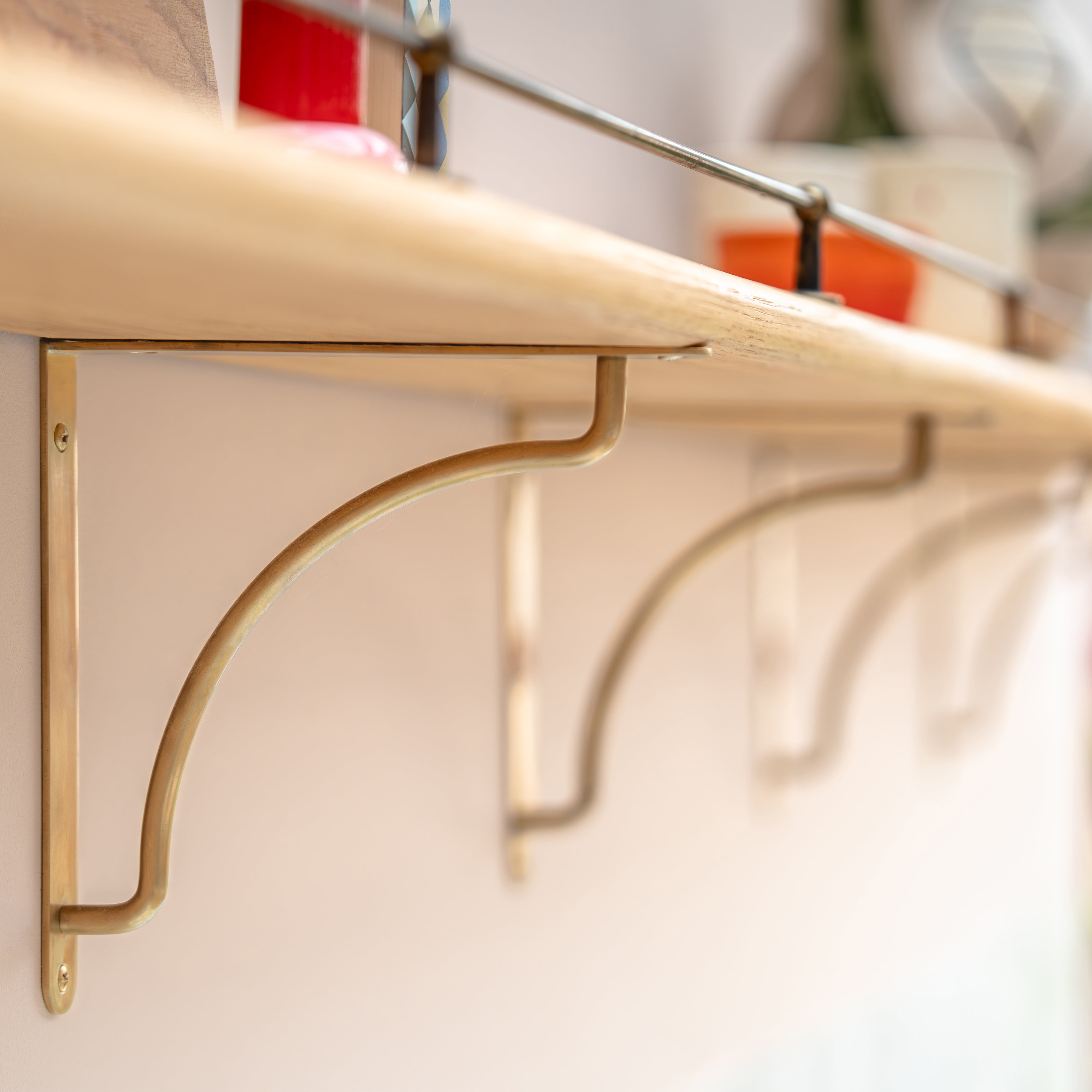 Nuestro soporte de estantería Kilburn está fabricado en latón macizo y soportará cómodamente 40kg.