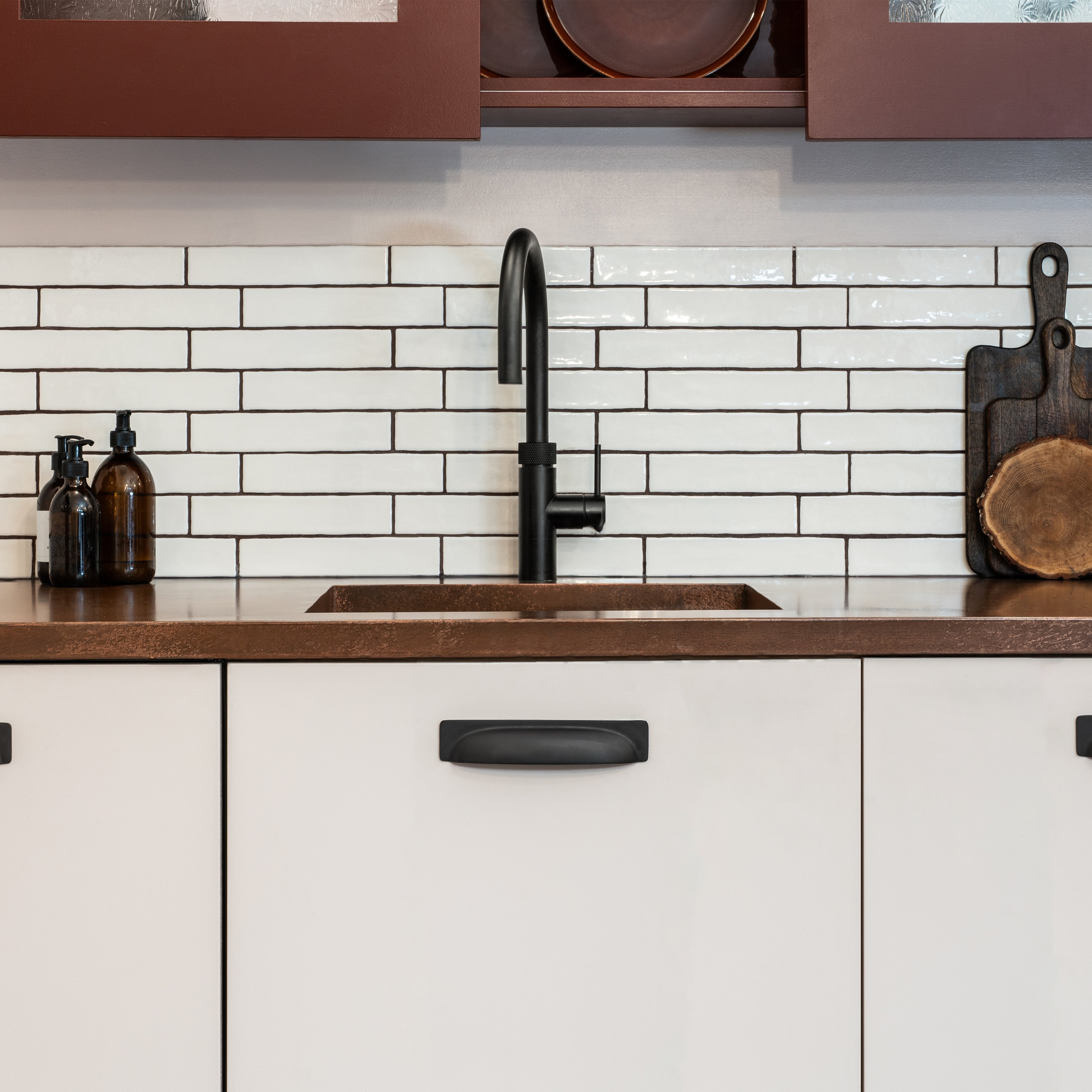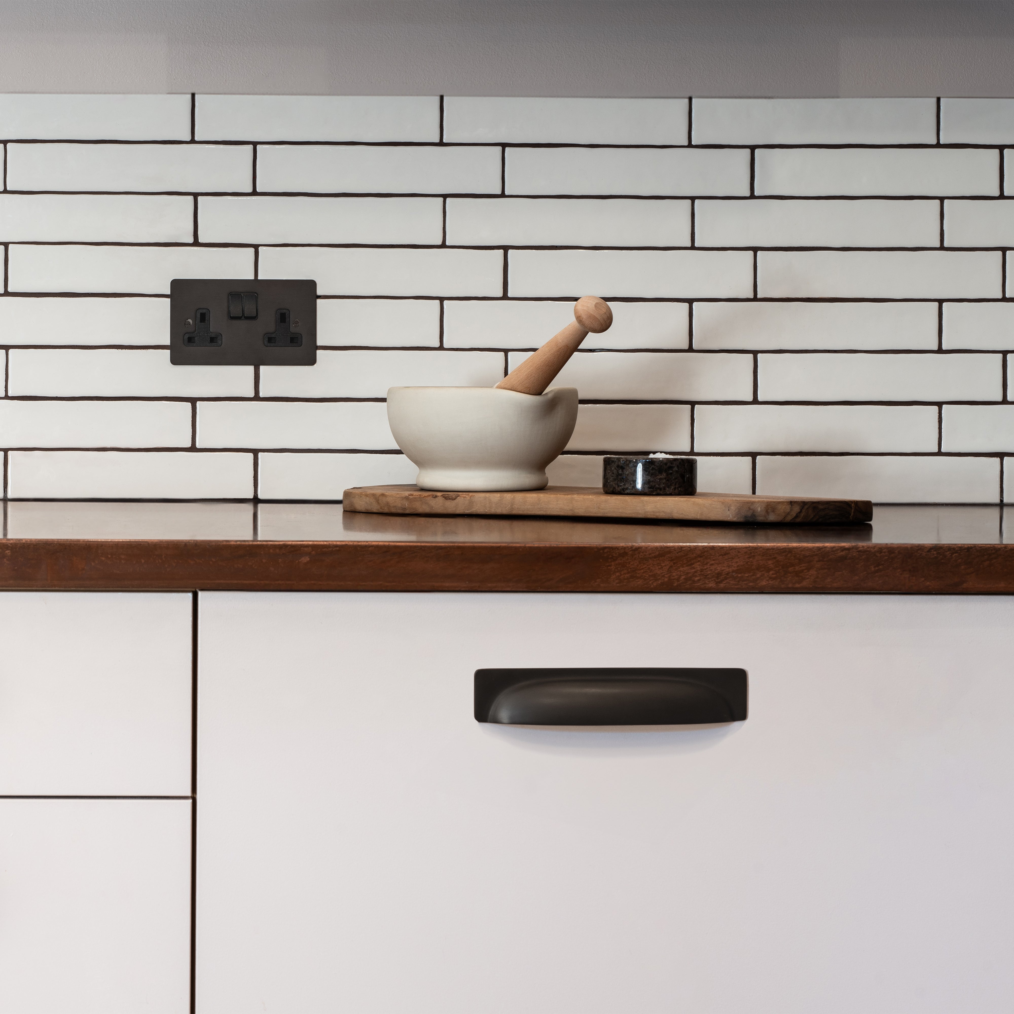 El bronce es nuestro acabado más atrevido, pero no es brillante ni luminoso, por lo que también tiene un lado sutil. Es un color marrón oscuro mate, casi negro bajo algunas luces.