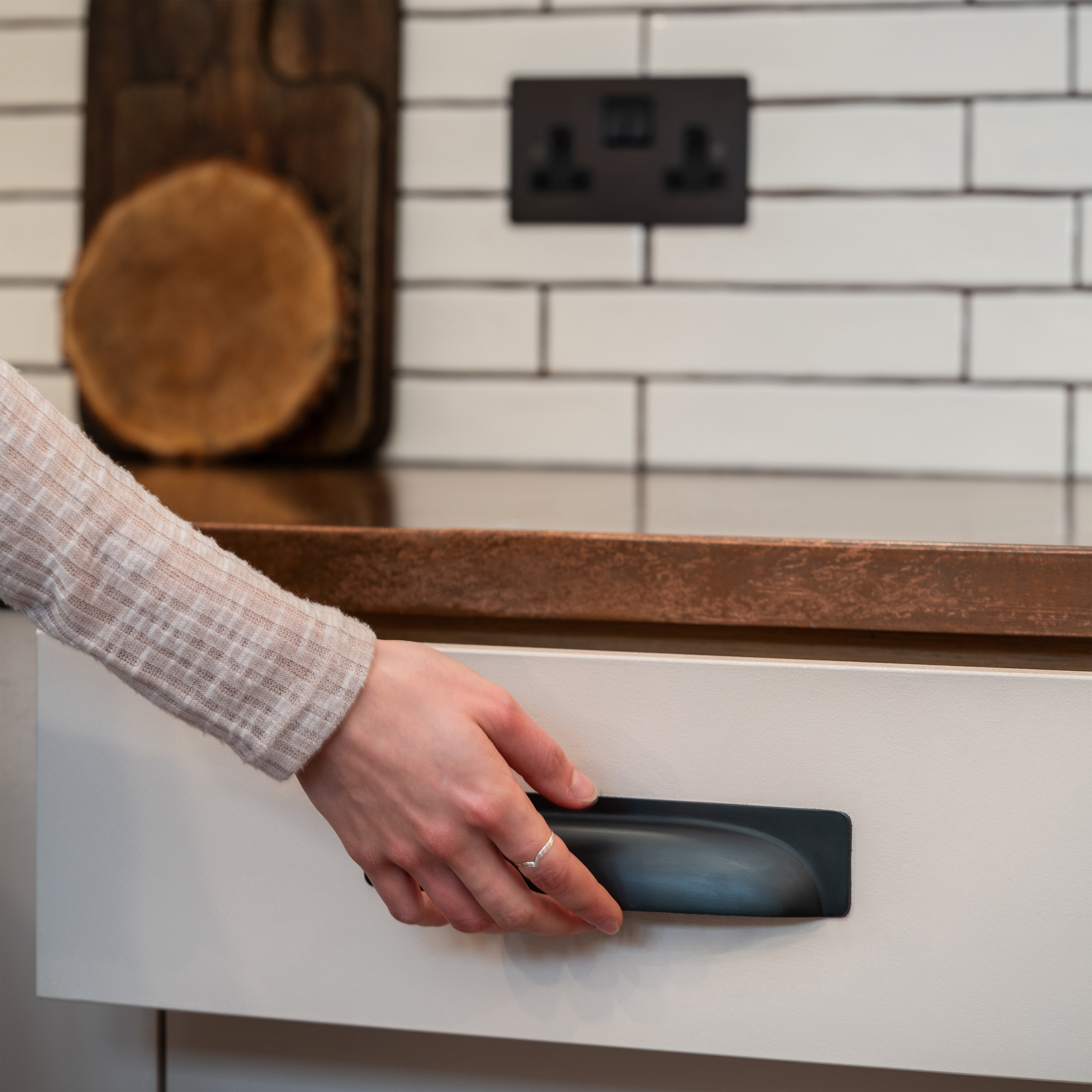 Estos tiradores estilo concha tradicionales dan una sensación de familiaridad y son ideales para muebles de estilo tanto moderno como contemporáneo. Estos tiradores más largos son ideales para cajones y puertas de alacenas más grandes.