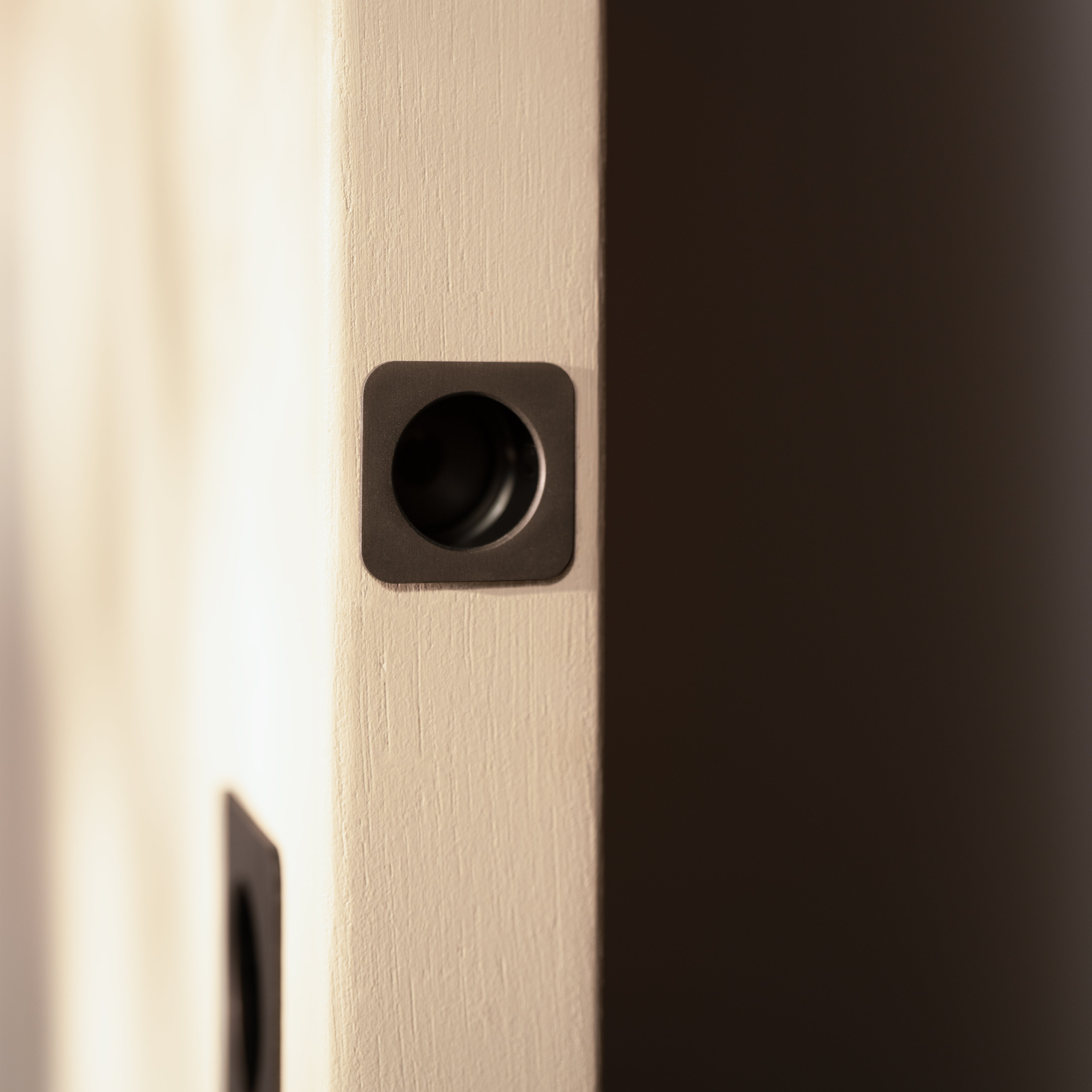 Este tirador embutido simple con forma cuadrada facilita el deslizamiento para abrir y cerrar puertas. Está diseñado para colocarse en el borde vertical de la puerta y quedar al ras.