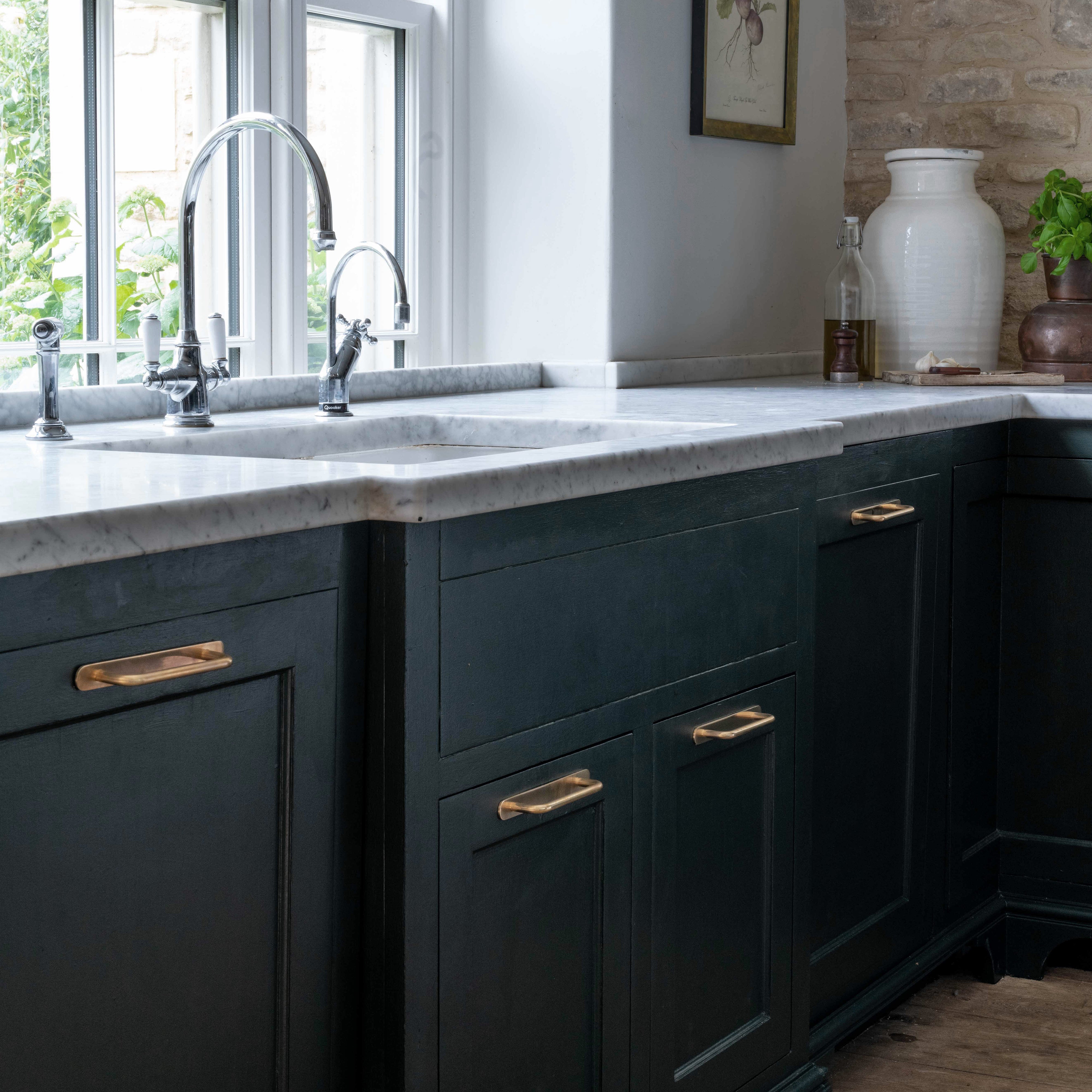 El latón antiguo es lo que se llama un acabado 'vivo' porque reacciona al aire y la humedad que lo rodean, lo que hace que se oscurezca (sobre todo en las zonas que más se tocan). Le hemos dado una ventaja envejeciéndolo a mano, para que tenga ese aspecto antiguo nada más sacarlo de la caja. Puedes combinarlo con los tiradores redondos Kilburn para muebles en armarios más pequeños para tener un estilo uniforme.